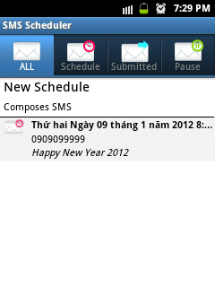 Bạn muốn gửi tin nhắn chúc mừng sinh nhật cho người yêu hay bạn bè vào đúng 12h đêm. Nhưng không thể thức khuya nhắn tin dc. Thì SMS Scheduler sẽ gửi tin nhắn giúp bạn